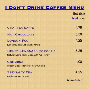 Menu: (prices and items may be subject to change)
